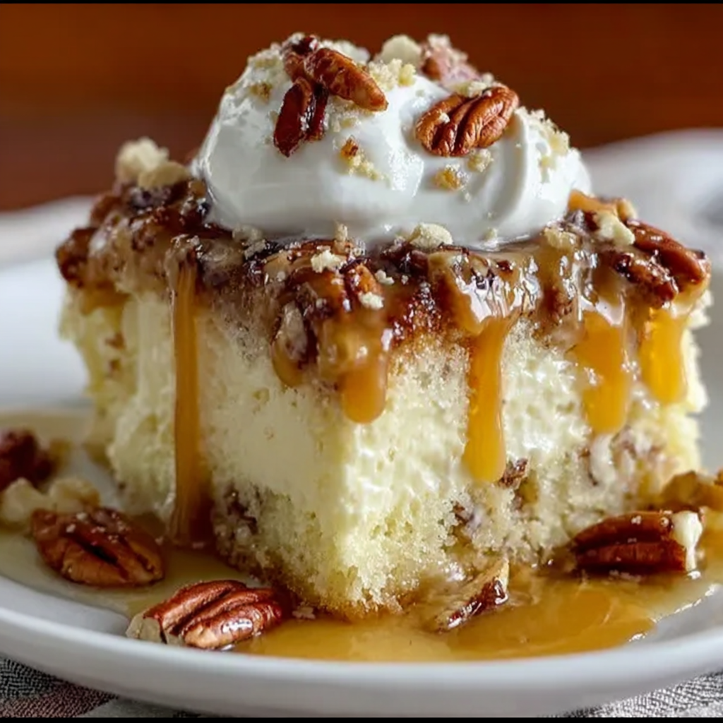 Indulgent Butter Pecan Praline Poke Cake Recipe