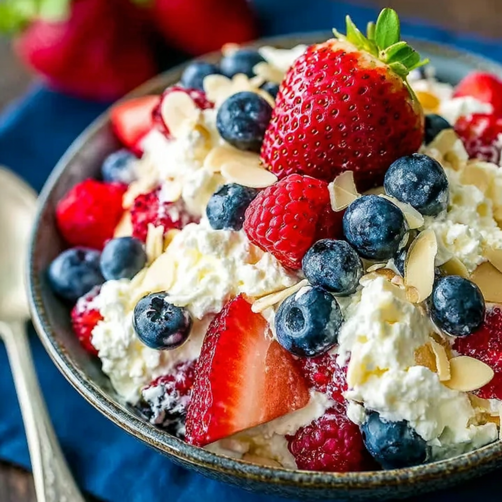 Red, White, and Blue Cheesecake Salad Recipe Delight!