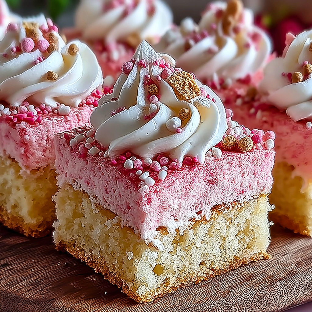 These Pink Vanilla Cake Squares are a delightful treat that brings a touch of sweetness...