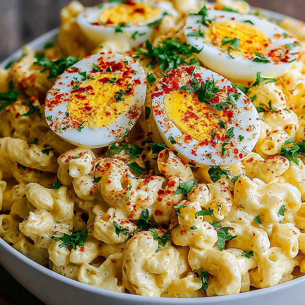 Creamy Deviled Egg Macaroni Salad Delight