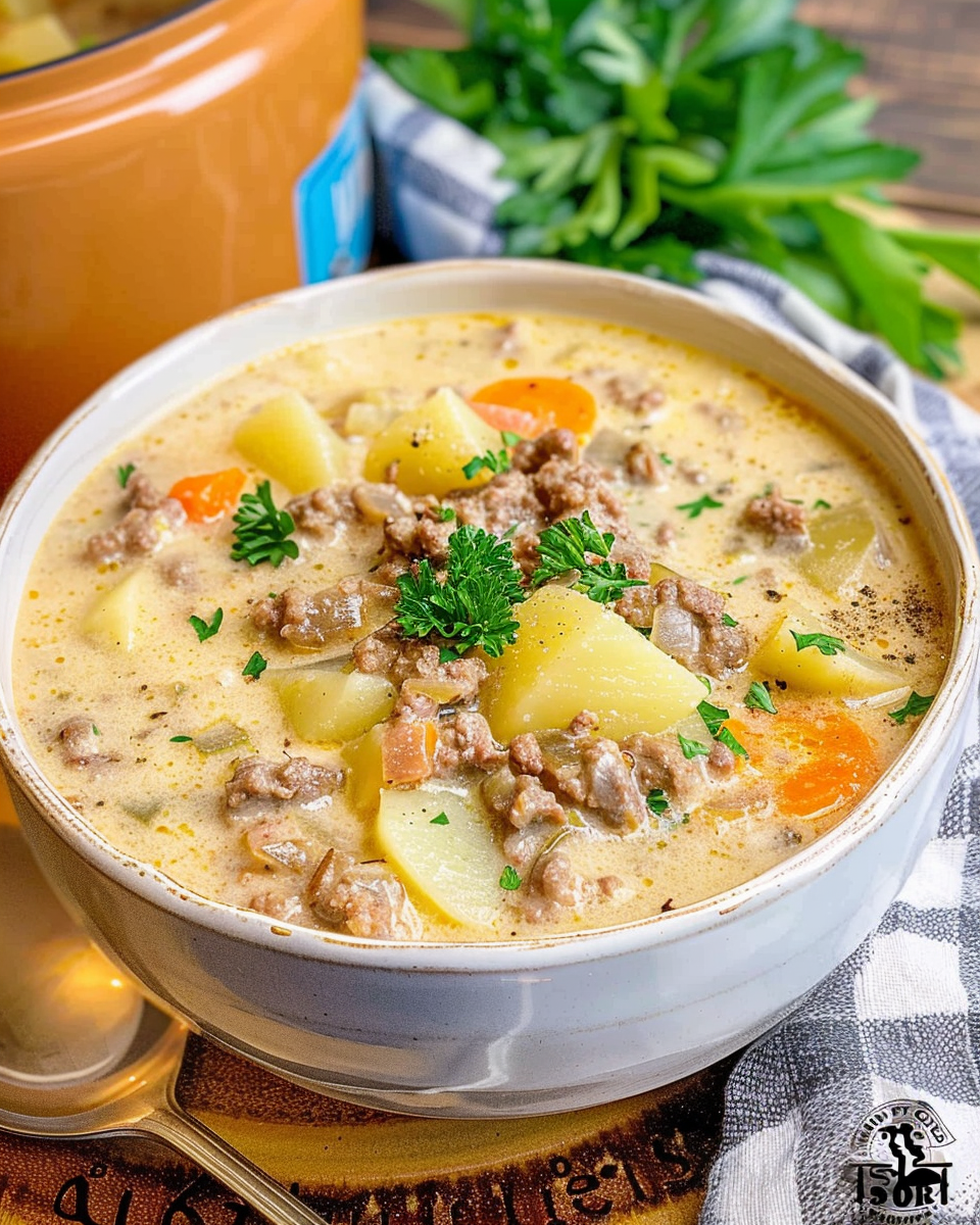 Savoring Comfort: Crockpot Creamy Potato & Hamburger Soup
