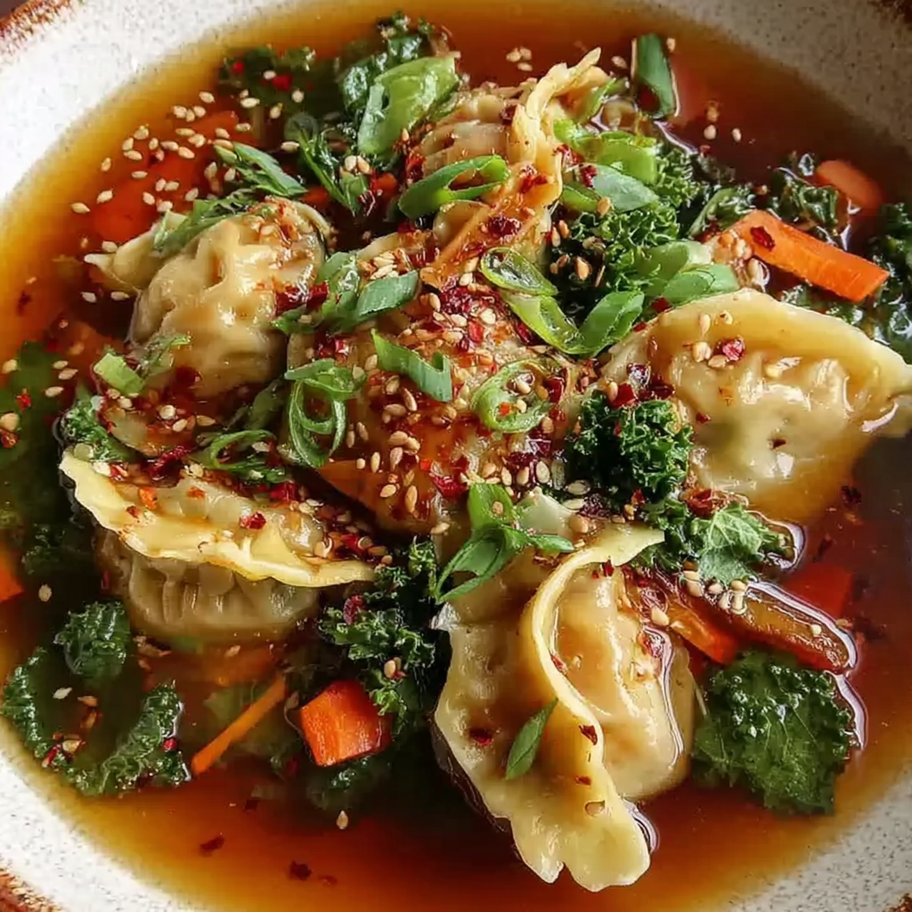 Flavorful Spicy Asian Dumpling Potsticker Soup