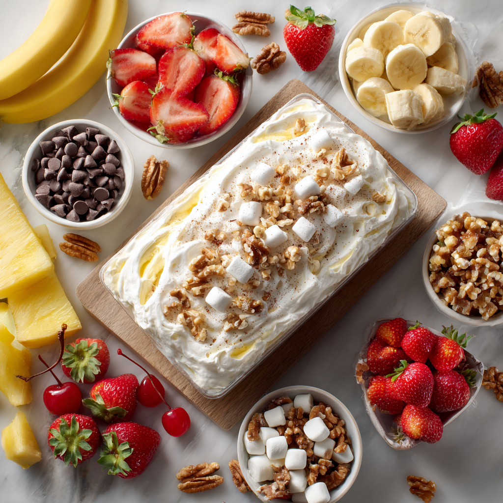 With fresh fruit and a blend of sweet and creamy ingredients, Banana Split Fluff is not only tasty but also visually appealing. Let’s dive into the ingredients and preparation to bring this delightful dessert to your table.